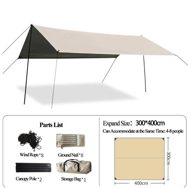 From mountain campsites to coastal beaches, our camping tarp adapts to every outdoor scenario. Pitch it over your tent as an extra waterproof canopy tent layer to protect against sudden downpours, or set it up as a standalone UV-resistant awning for a shaded picnic spot by the lake. It’s equally at home at a backyard birthday party, where the 4.3X5m model can cover a dining table and seating area, or at a music festival, where the lightweight camping tarp provides a quick, easy-setup canopy tent to escape the sun between sets. For backpackers, the 3X3m portable outdoor shelter doubles as a ground mat to keep your sleeping bag dry, while families will love the 3X5m size for creating a communal shaded space during weekend campouts. No matter where you go, our camping tarp is more than just a canopy tent—it’s a versatile, reliable companion that turns any outdoor moment into a comfortable, protected experience.