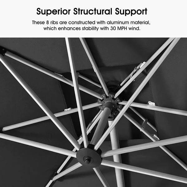 360-Degree Rotation: Using a convenient foot pedal, you can rotate the entire umbrella 360 degrees without moving the base.