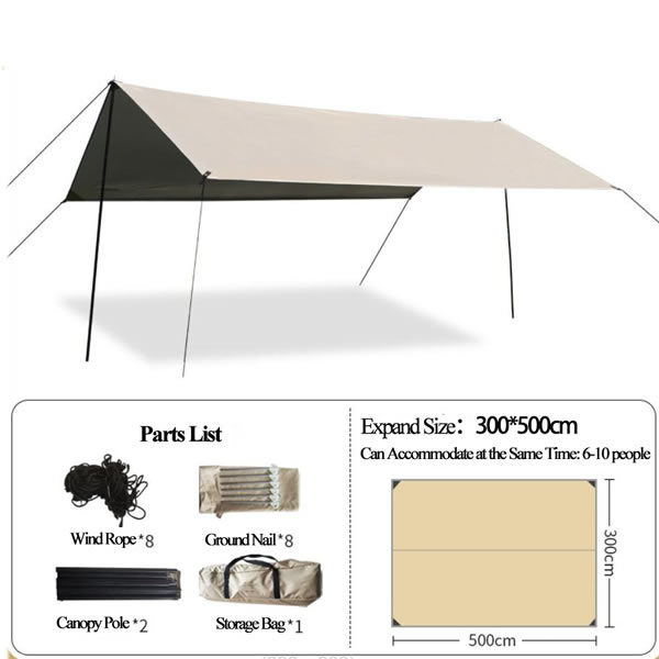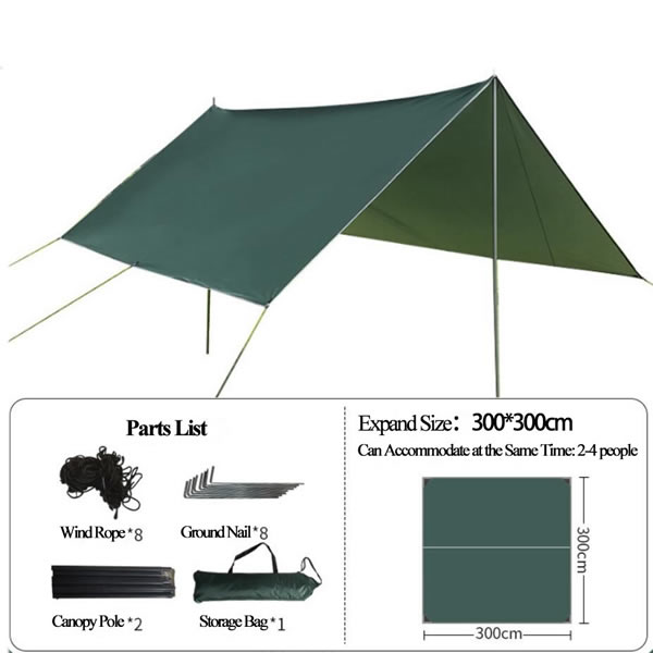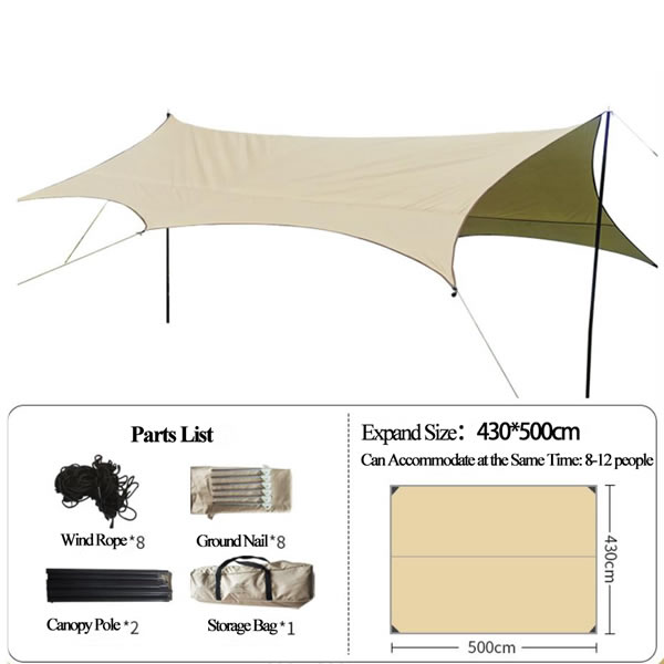 From mountain campsites to coastal beaches, our camping tarp adapts to every outdoor scenario. Pitch it over your tent as an extra waterproof canopy tent layer to protect against sudden downpours, or set it up as a standalone UV-resistant awning for a shaded picnic spot by the lake. It’s equally at home at a backyard birthday party, where the 4.3X5m model can cover a dining table and seating area, or at a music festival, where the lightweight camping tarp provides a quick, easy-setup canopy tent to escape the sun between sets. For backpackers, the 3X3m portable outdoor shelter doubles as a ground mat to keep your sleeping bag dry, while families will love the 3X5m size for creating a communal shaded space during weekend campouts. No matter where you go, our camping tarp is more than just a canopy tent—it’s a versatile, reliable companion that turns any outdoor moment into a comfortable, protected experience.