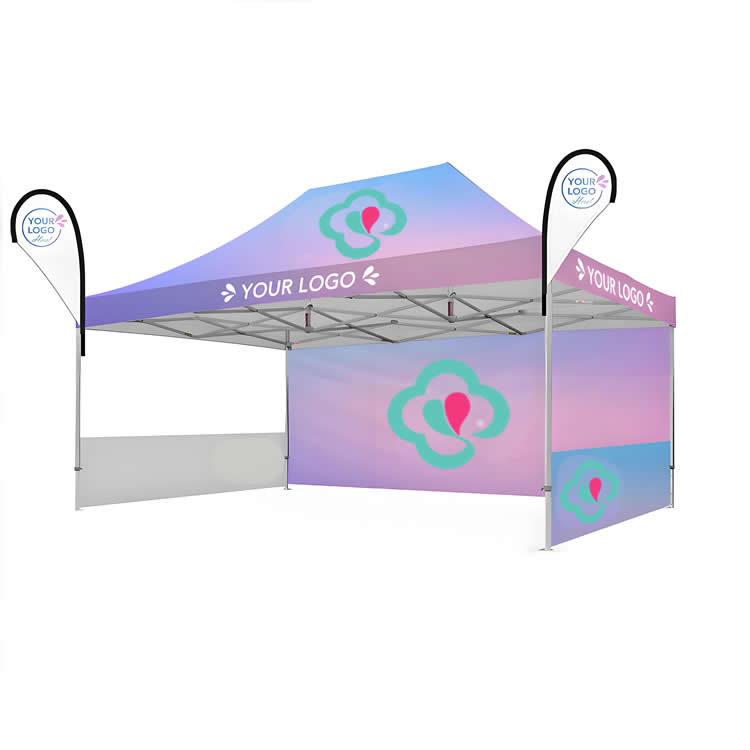 Complementing the full wall are 2 quantities of Single Side Print Half Wall, which add versatility, extra branding space, and flexibility to your display. These half walls can be strategically placed around the tent to create partial privacy, define your booth area, or showcase additional brand messaging that complements the main design. Each half wall is fully customizable—you can print different designs on each to highlight various aspects of your brand, such as product lines, customer testimonials, or special promotions. They are easy to attach and remove, making them adaptable to different event spaces, booth layouts, and changing marketing needs.